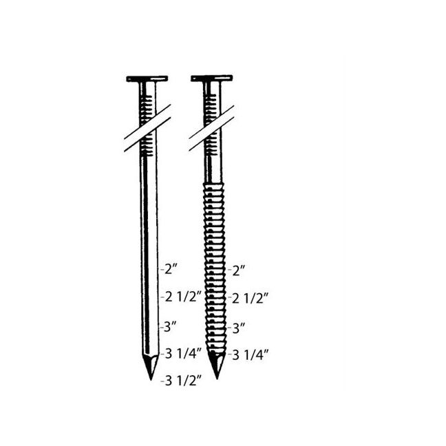 • Metal Connector nails: 1-1/2″ to 2-1/2″ metal connector nails (.131″ to .162″ diameter)
