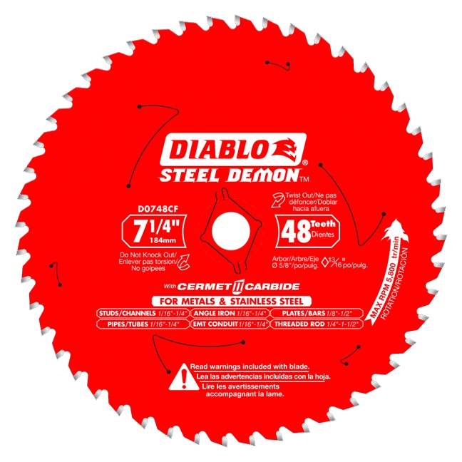 Diablo D0748CFX Steel Demon 7-1/4″ x 48T Cermet Metal and Stainless Steel Cutting Saw Blade: