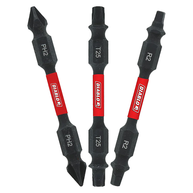 The Diablo DDEV25-S3 2-1/2″ Double-Ended Phillips, Square and Torx Drive Bit Assorted Pack 3Pk includes: