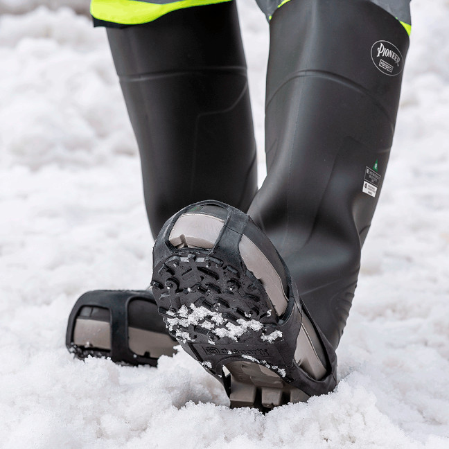 • Textured “Diamond Knurling” inner lining grips the footwear, keeping traction aids stable and in place