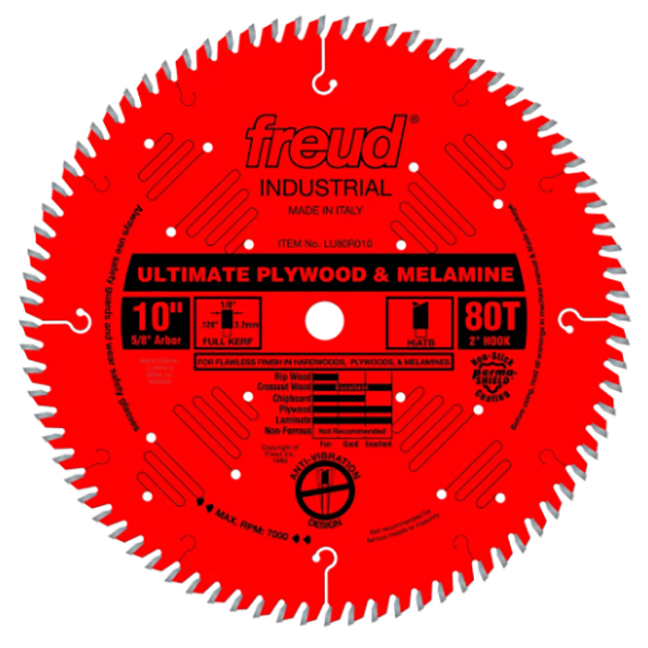 The Freud LU80R010 10″ x 80T x 5/8″ Ultimate Plywood & Melamine Blade: