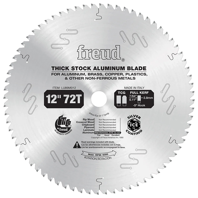 The Freud LU89M012 12″ x 72T x 1″ Thick Aluminum & Non-Ferrous Metal Blade: