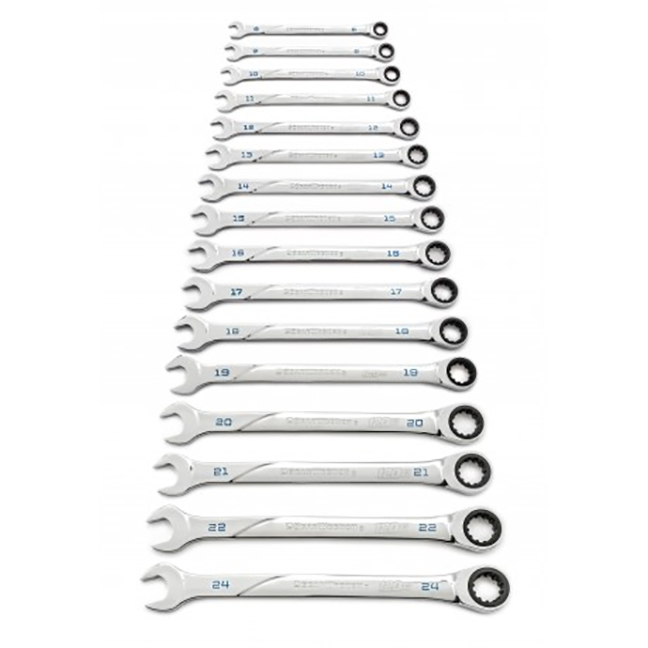 The GearWrench 86427 120XP Universal Spline XL Ratcheting Combination Metric Wrench Set 16-Piece includes: