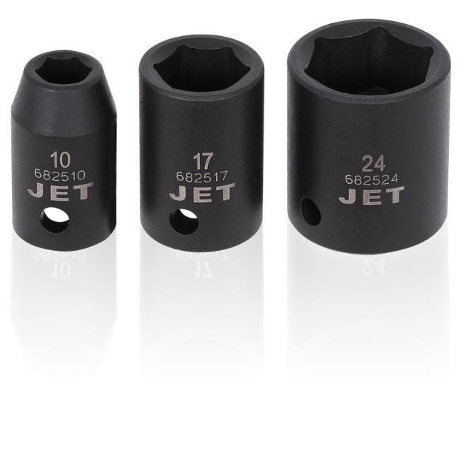 The Jet 610308 PS1212M 1/2″ Drive 6 Point Metric Impact Socket Set 12-Piece includes: