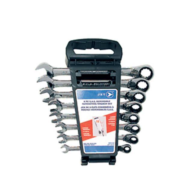 Jet 700321 RCWS-8SR 8-Piece Long SAE Reversible Ratcheting Combination Wrench Set includes: