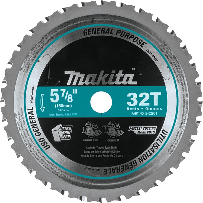 Makita E-02951 5‑7/8″ 32T Carbide‑Tipped Circular Saw Blade for Thick Ferrous Metal :