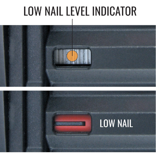 • Low staple indicator on the magazine alerts you on when it’s time to reload nails