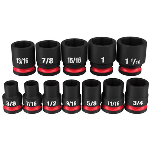 - SHOCKWAVE Impact Duty 1/2″ Drive SAE Standard 6 Point Socket sizes: