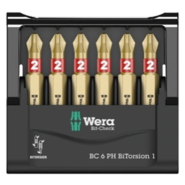 Wera 136378 Carded Bit Check 6 PH Bi-Torsion 1 with 6 Phillips PH2 x 2″ Driver Bits